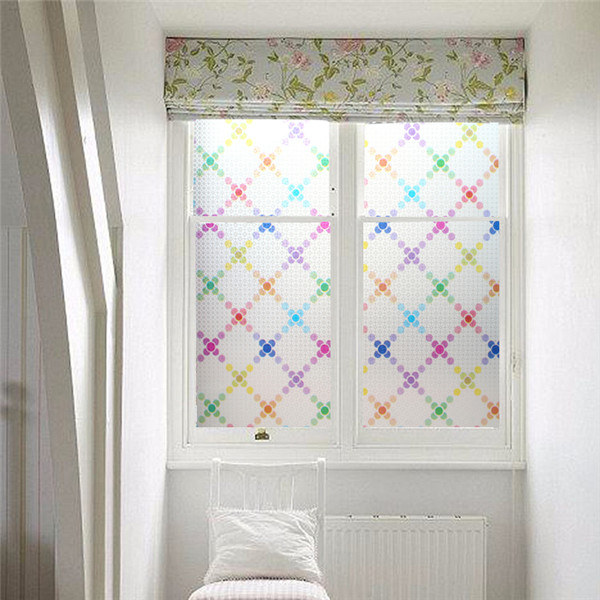 Frostad fönsterfilm med stilfullt mönstertryck till väldigt bra pris! Den här fönsterfilmen är frostad med ett härlig mönster av prickar i olika färger. En underbar färgklick för hemmet!