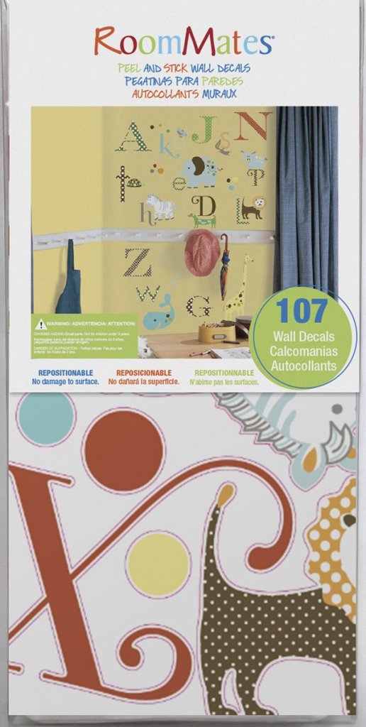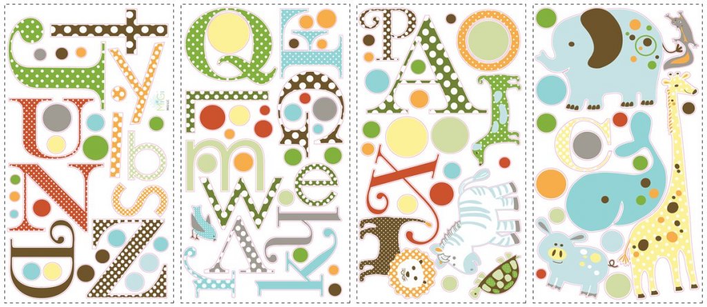 Alfabet som väggdekor och djur Bokstäver med djur som väggdekor Förpackning RoomMates med väggdekor